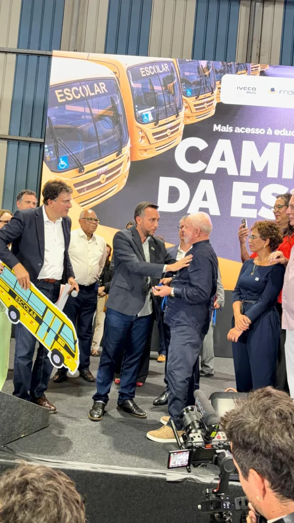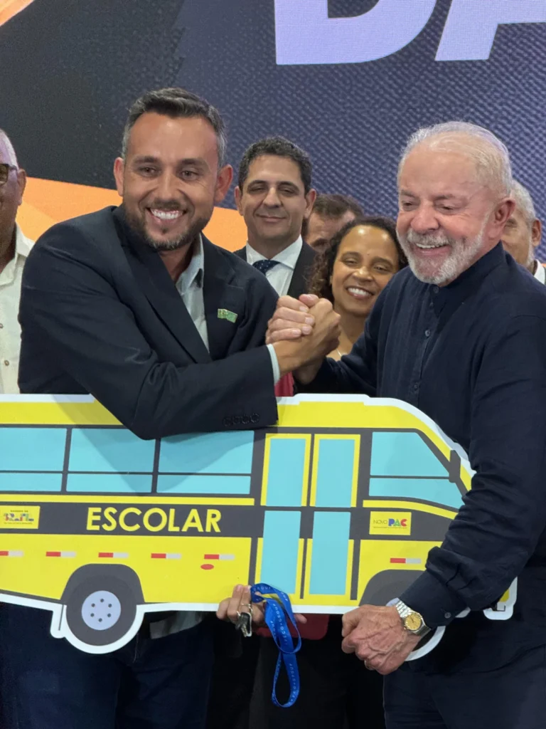 Prefeito interino Miquéias Figueiredo recebe chaves de novo ônibus escolar das mãos do Presidente Lula